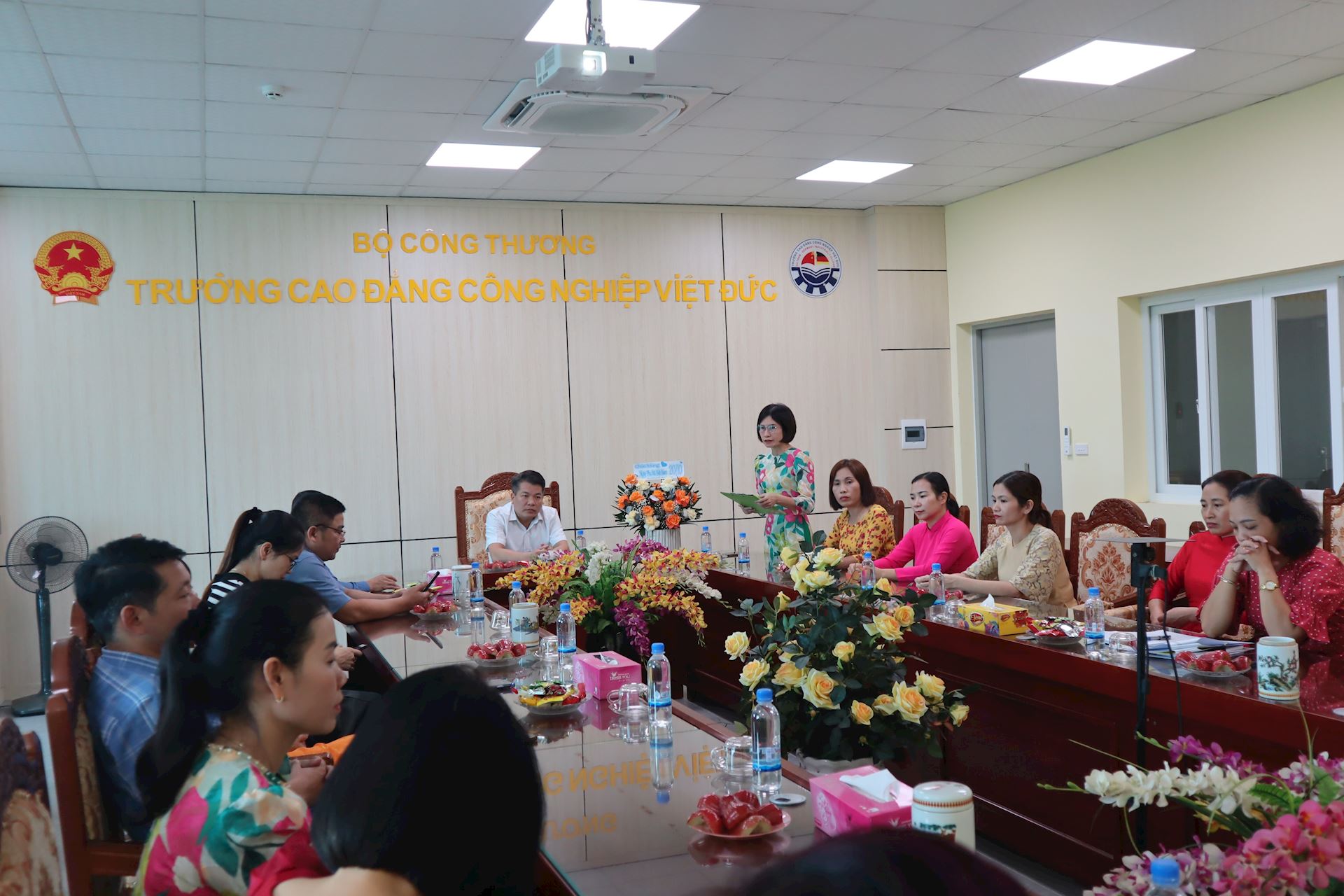 Phát biểu tại buổi lễ, đồng chí Trần Minh Đức - phó Hiệu trưởng nhà trường, trưởng ban vì sự tiến bộ của phụ nữ đã gửi những lời chúc mừng tốt đẹp nhất đến toàn thể nữ cán bộ, giảng viên, công nhân viên và học sinh - sinh viên của trường. Đồng chí ghi nhận và biểu dương những đóng góp to lớn của chị em phụ nữ trong công tác giảng dạy, nghiên cứu khoa học, quản lý và phục vụ đào tạo – những người đã góp phần quan trọng vào sự phát triển vững mạnh của Trường Cao đẳng Công nghiệp Việt Đức trong suốt thời gian qua.
