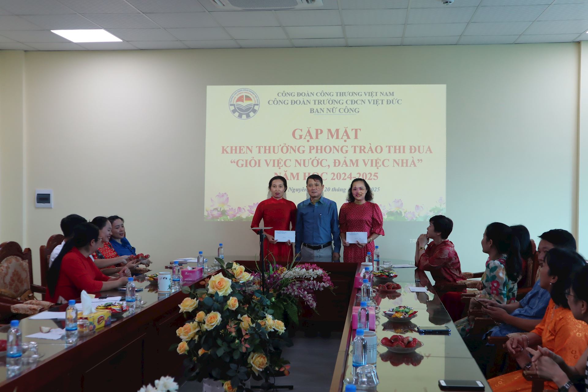 Nhân dịp này, Công đoàn trường cũng tặng hoa và khen thưởng các tổ nữ công có thành tích tiêu biểu, các chị em nữ công đã có thành tích suất sắc trong công tác tuyển sinh như một lời tri ân, khích lệ tinh thần phấn đấu, cống hiến của chị em trong công việc và cuộc sống.
