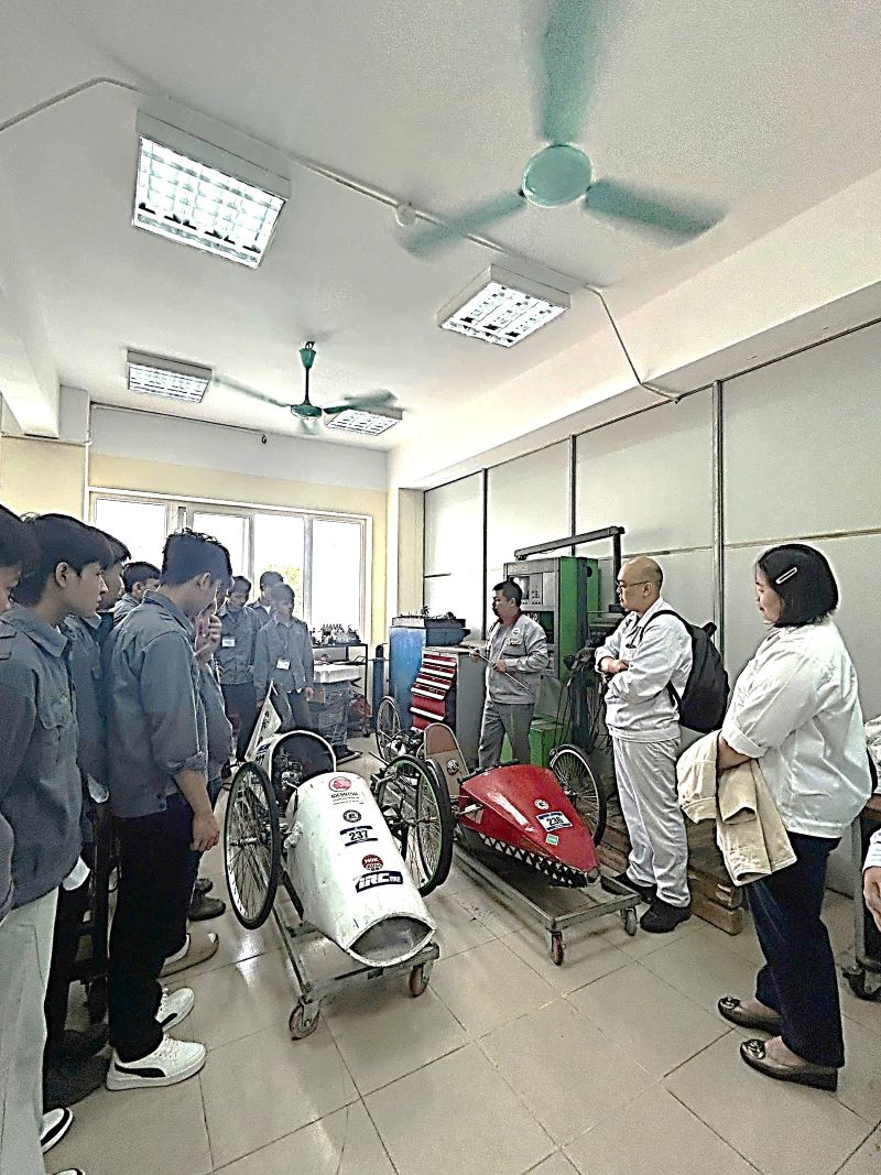 Đoàn công tác thăm quan khu vực chế tạo sản phẩm sáng tạo của HSSV được Honda Việt Nam tài trợ tham gia chương trình “Cuộc thi lái xe sinh thái - tiết kiệm nhiên liệu Honda EMC” và xưởng thực hành nghề Công nghệ ô tô